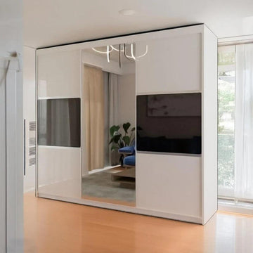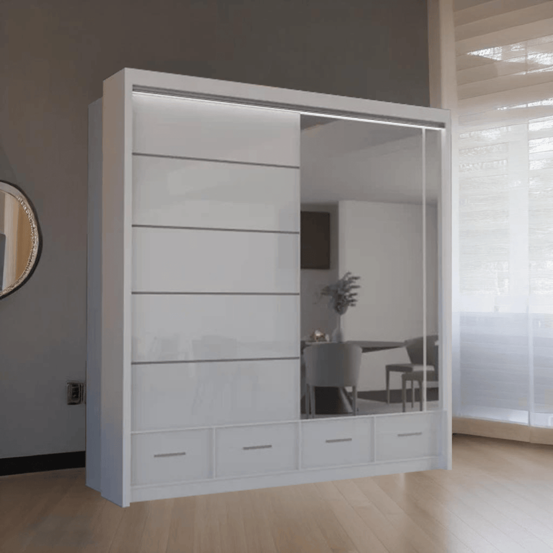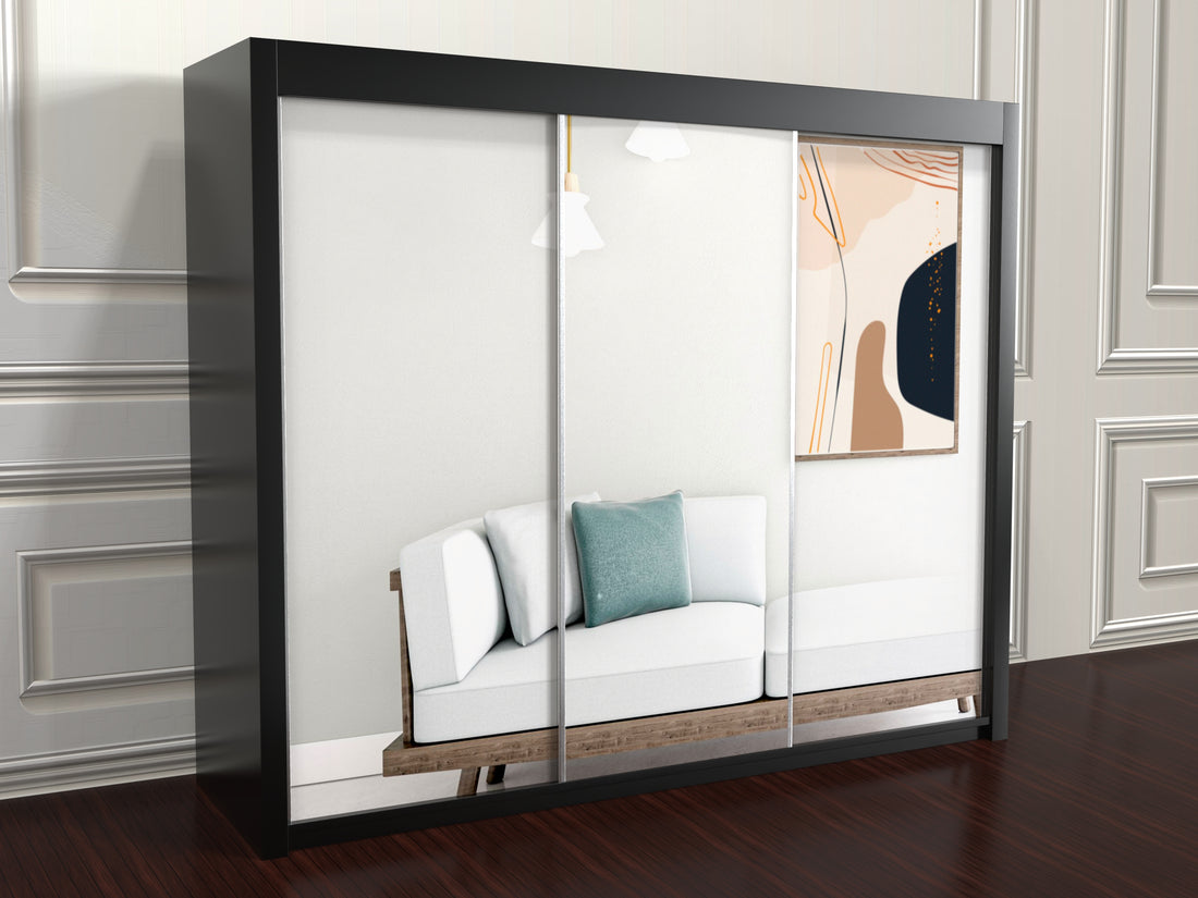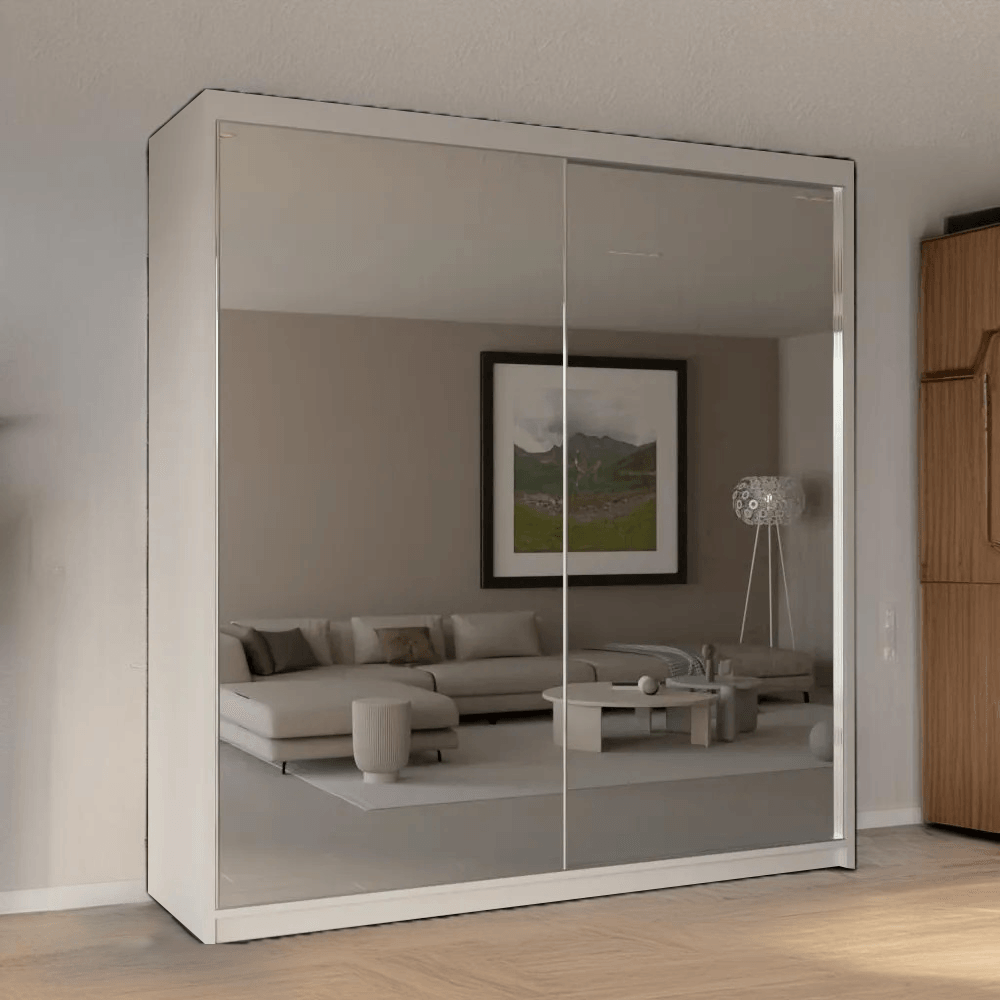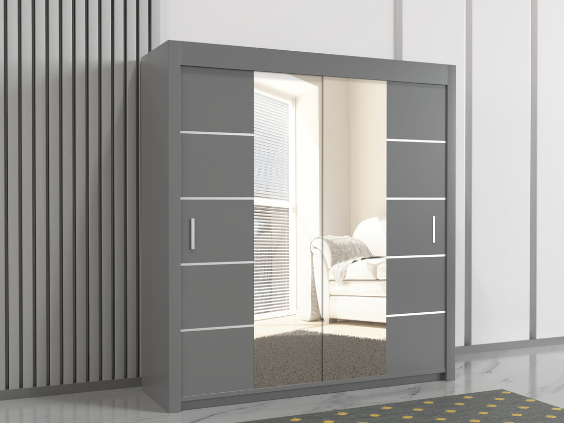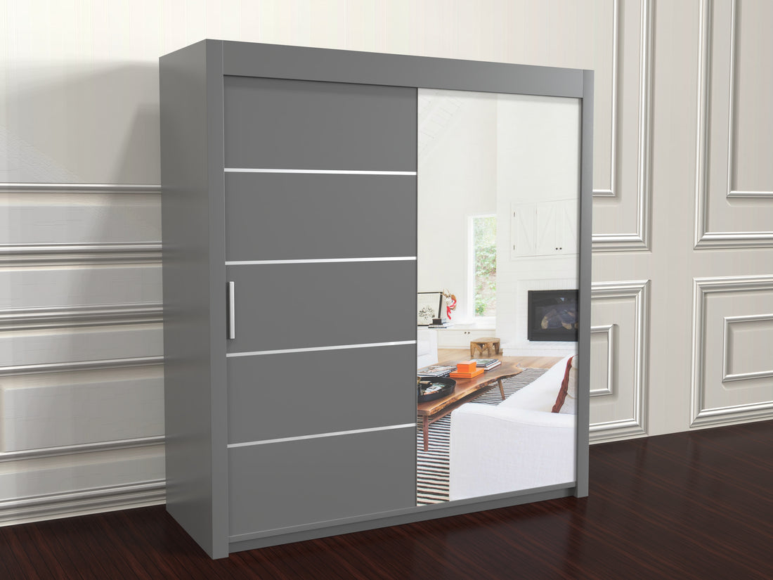 Queen Sliding Mirror Wardrobe - White, Grey, Black 150/200cm